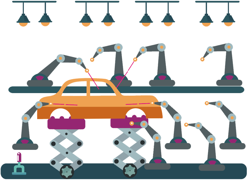 31축의 각종 모터와 4개 비전의 완벽한 동기 제어로 ( 40msec에 1개 생산 )
